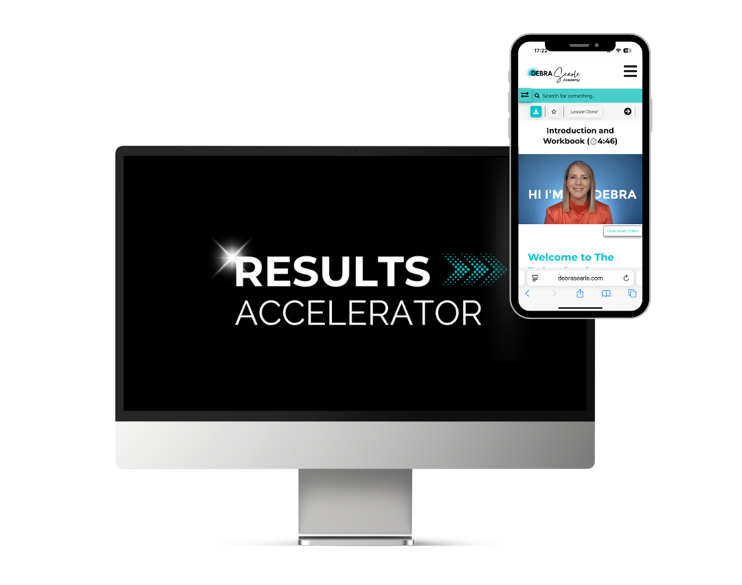 Results Accelerator is a comprehensive online course designed to help you reflect, reset, and build a life you love.  Through a series of empowering modules including Utilising the Power of the Subconscious Mind, Overcoming Challenges, Mastering Momentum, and Brain Science that helps you Smash your Goals.  Youâll gain the tools, strategies, and motivation to unlock seemingly impossible goals. With actionable exercises and Debra Searle's practical insights, this self-paced course will guide you step-by-step to design a fulfilling, balanced, and impactful life, both professionally and personally.